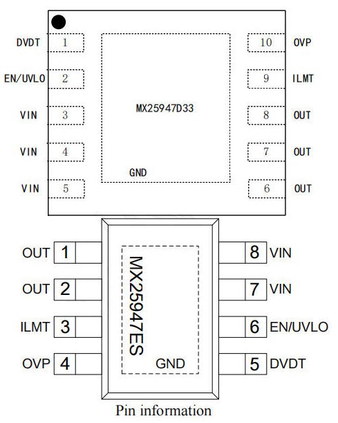 E-Fuse MX25947 24V Electronic Fuse With Adjustable Overvoltage Protection For Adapter Powered Devices