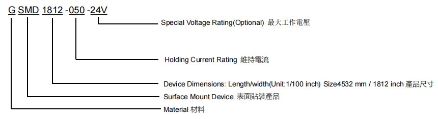 GSMD1812-250-24V | 2.50 | 5.00 | 24 | 40 | 1.0 | 8.00 | 2.50 | 0.015 | 0.090 |