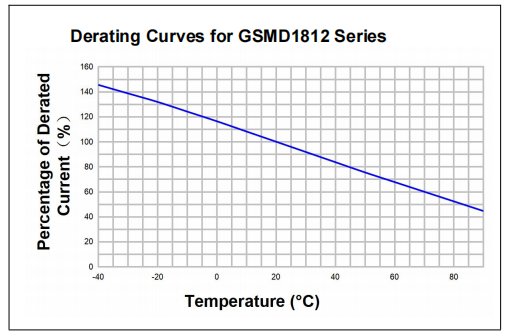 4. Hold current at all temperature specified in the specification is the conventional performance of PTC obtained by one reflow soldering. It can hold 1 hour under the current conditions corresponding to different temperatures. This current is not the condition of long-term charging or discharging current for this type of PTC.
