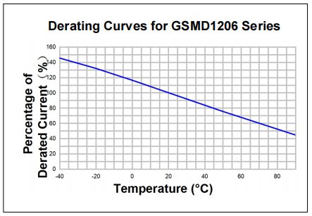 4. Hold current at all temperature specified in the specification is the conventional performance of PTC obtained by one reflow soldering. It can hold 1 hour under the current conditions corresponding to different temperatures. This current is not the condition of long-term charging or discharging current for this type of PTC.