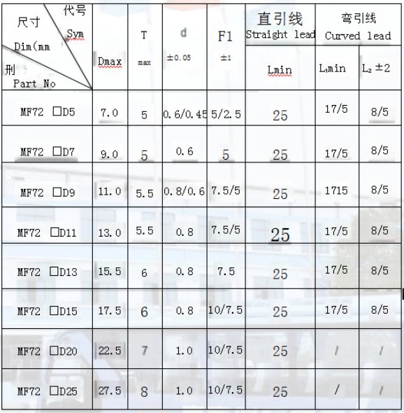 (2) | 最大稳态电流 (A) Max.Steady State Currer | 最大电流时近似 电阻值(Ω) Approx.R of Max.Cur. (S) | 耗散系数 约(mw/℃ Dissi.Coef v C) | 热时间常数 约 ( s ) Thermal time Constant(S) | 工作温度 ℃) Operating Temp. (℃) |