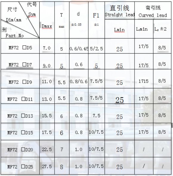 型 号 Part No MF72 |